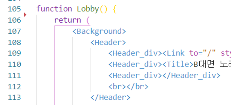 function 함수() 안에 return 부분에 const 변수 태그를 걸어서 html 내용.