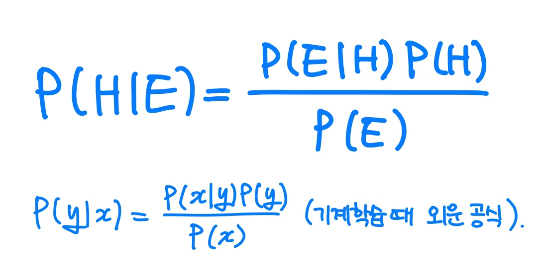 베이즈 정리: 사전확률과 사후확률 사이의 관계를 나타내는 정리.