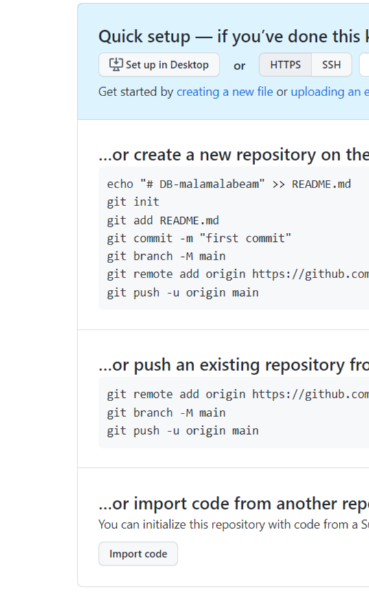 그냥 레포 새로 만들고 올리는 게 나을 것 같아서 새로 만들었다. readme 생성 안 한 채로 만들면 가이드가 나오는데 이걸 보고 따라했다. readme 괜히 만든다고 설쳐서 가이드 찾느라 또 시간 좀 걸림 ㅎ