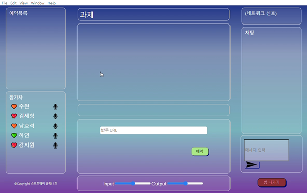 - 사용 소프트웨어: node.js module(socket.io, react), electron