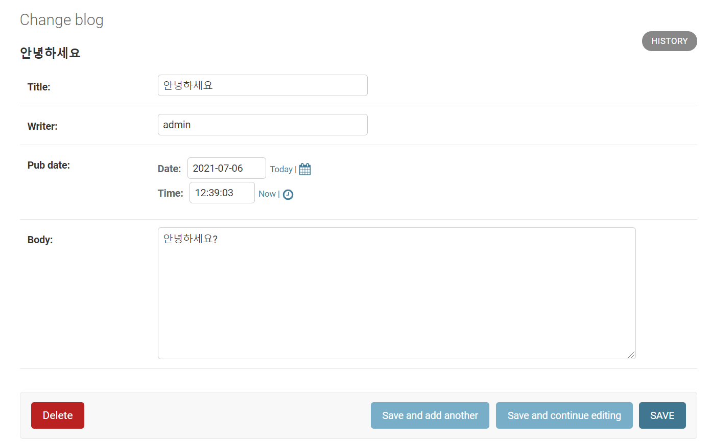 글 작성하면 Blog object(1) 의 형태로 뜬다. => models.py 들어가서 수정!