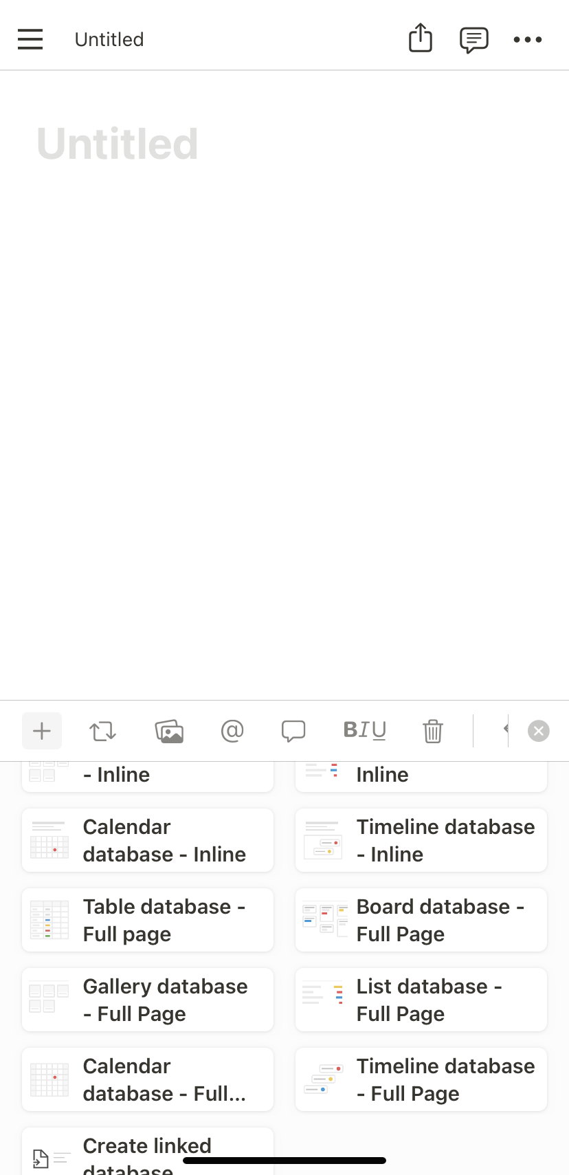 빈 페이지 선택하고 / 버튼 누르면 형식을 고를 수 있는데 밑으로 내려가면 inline과 full page 중 선택할 수 있다.