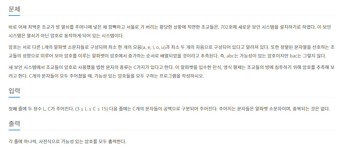 문제 https://www.acmicpc.net/problem/1759