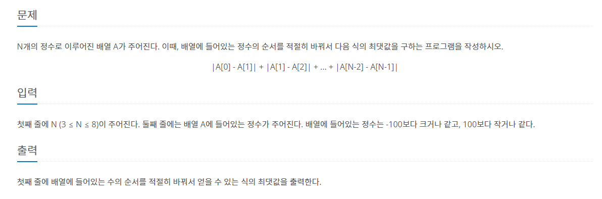 문제 https://www.acmicpc.net/problem/10819