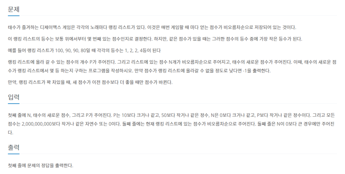 1205번: 등수 구하기