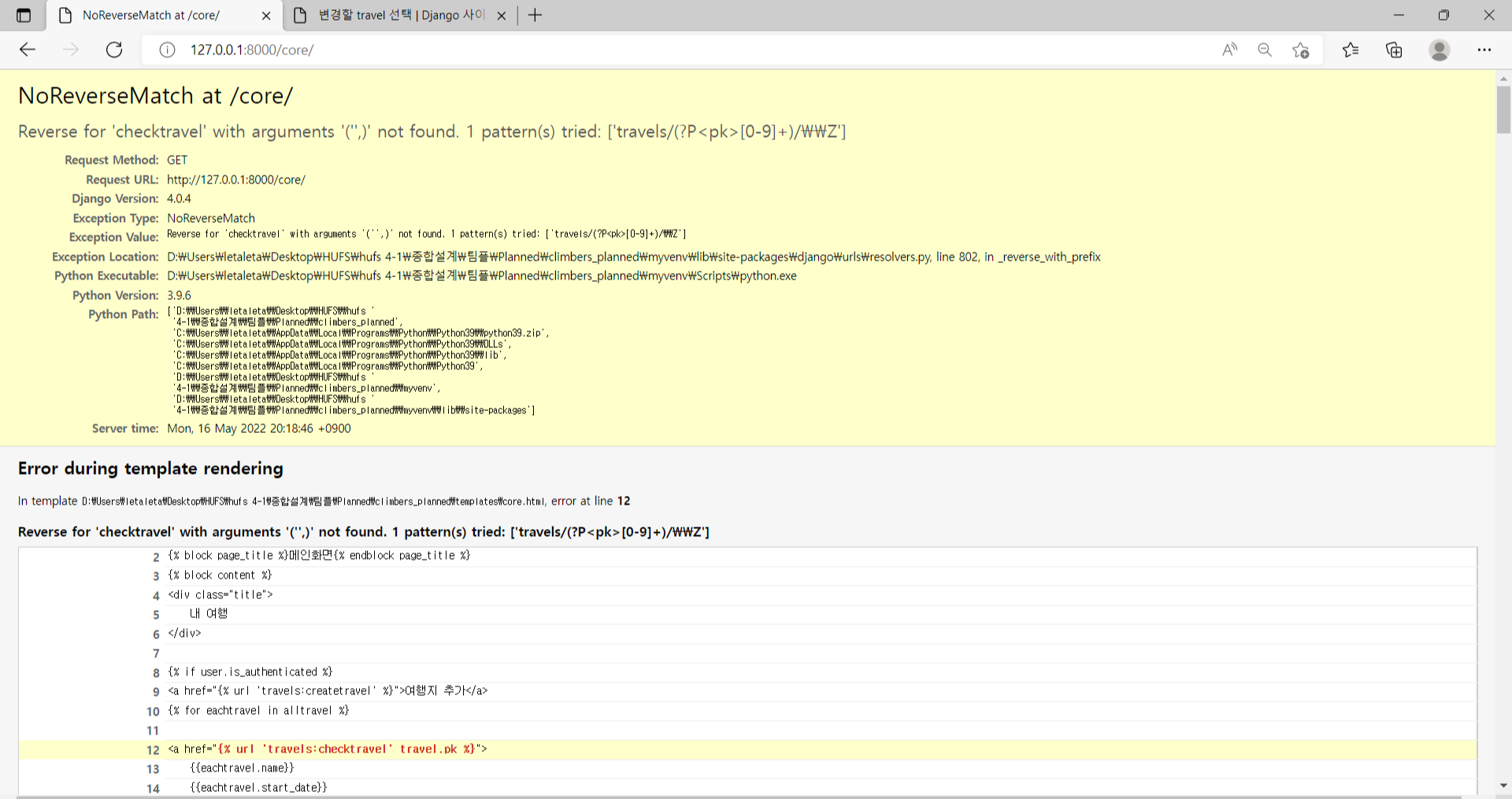 pk 지정을 잘못해준 것 같아서 <a href="{% url 'travels:checktravel' travel.name %}"> 이렇게 바꿨는데 해결되지 않았다.