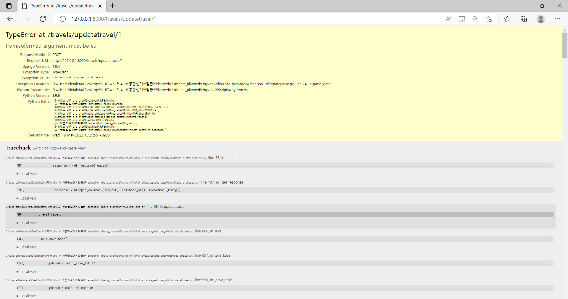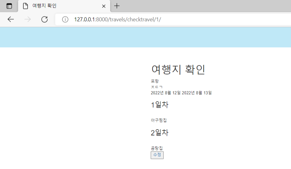 print(travel.name)을 해봤는데 수정 전에는 포항이 제대로 프린트되는데