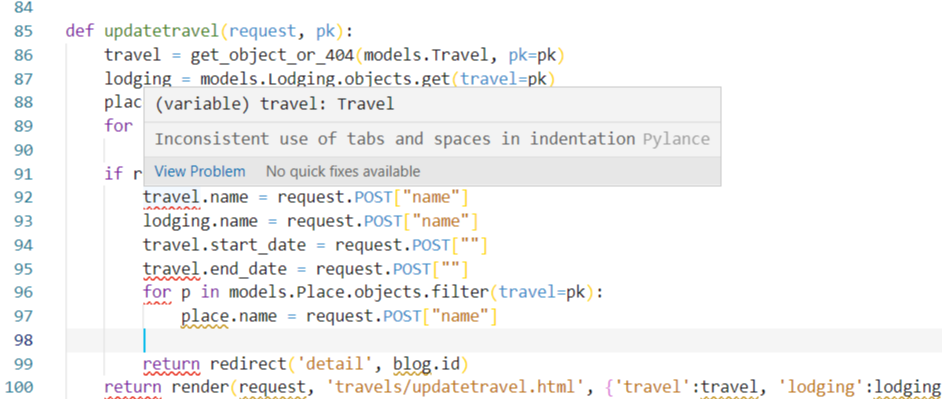 views.py 수정하는 과정에서 자꾸 이상한 빨간 줄이 나왔다.