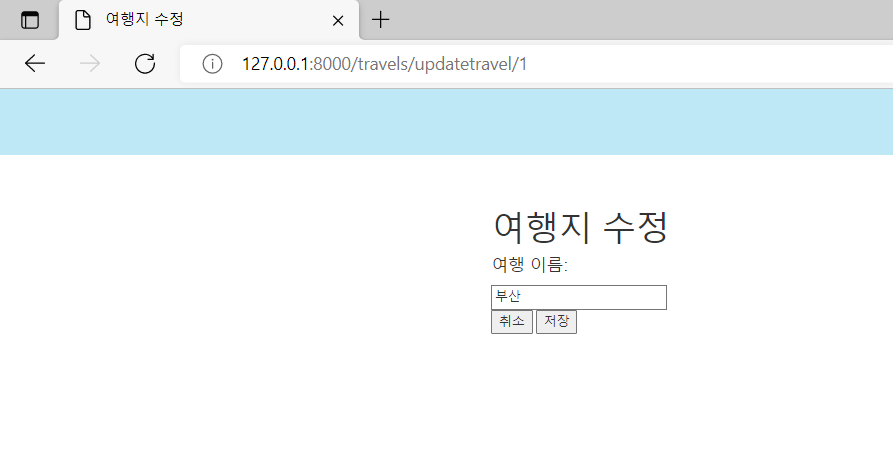 멋사에서 했던 CRUD 참고해서 여행지 수정 기능을 추가하였다. (update)