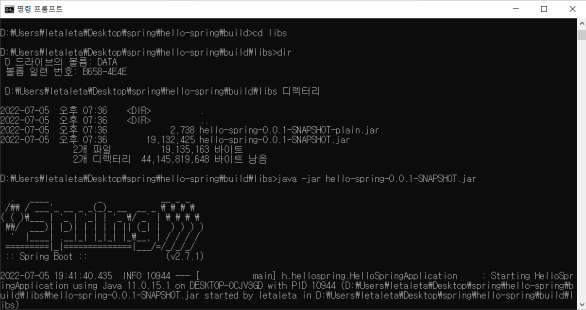 D:\Users\letaleta\Desktop\spring\hello-spring\build\libs>java -jar hello-spring-0.0.1-SNAPSHOT.jar