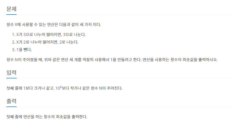 문제 https://www.acmicpc.net/problem/1463