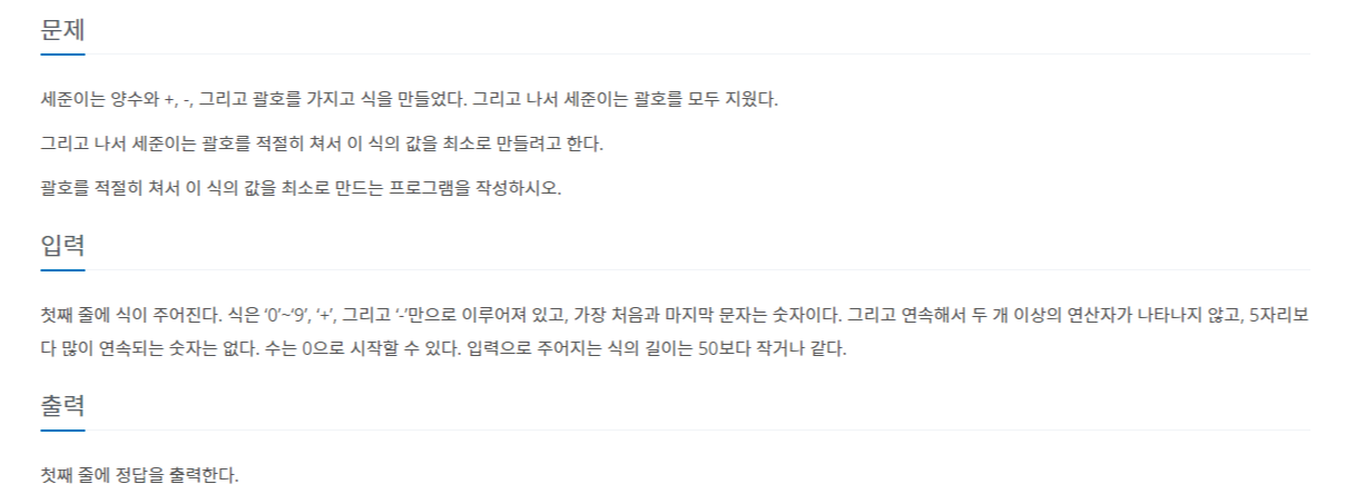 문제 https://www.acmicpc.net/problem/1541