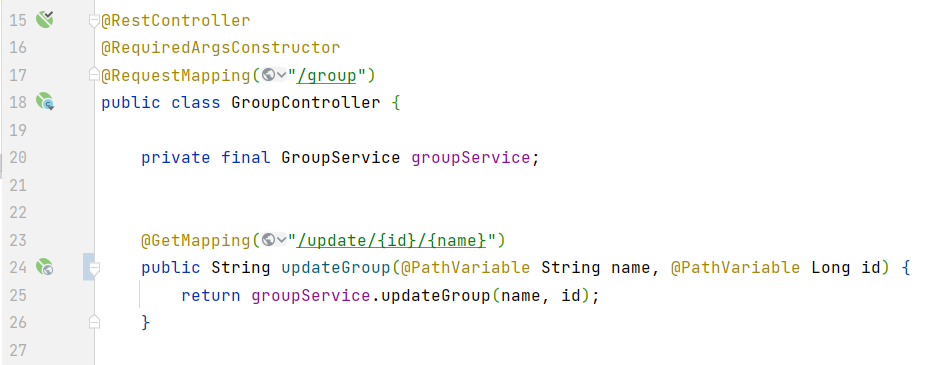처음에는 수정할 때 updateGroup() 함수를 만들었었는데 그냥 repository에서는 save()로 하고 service 쪽에서부터는 updateGroup()으로 하기로 했다.