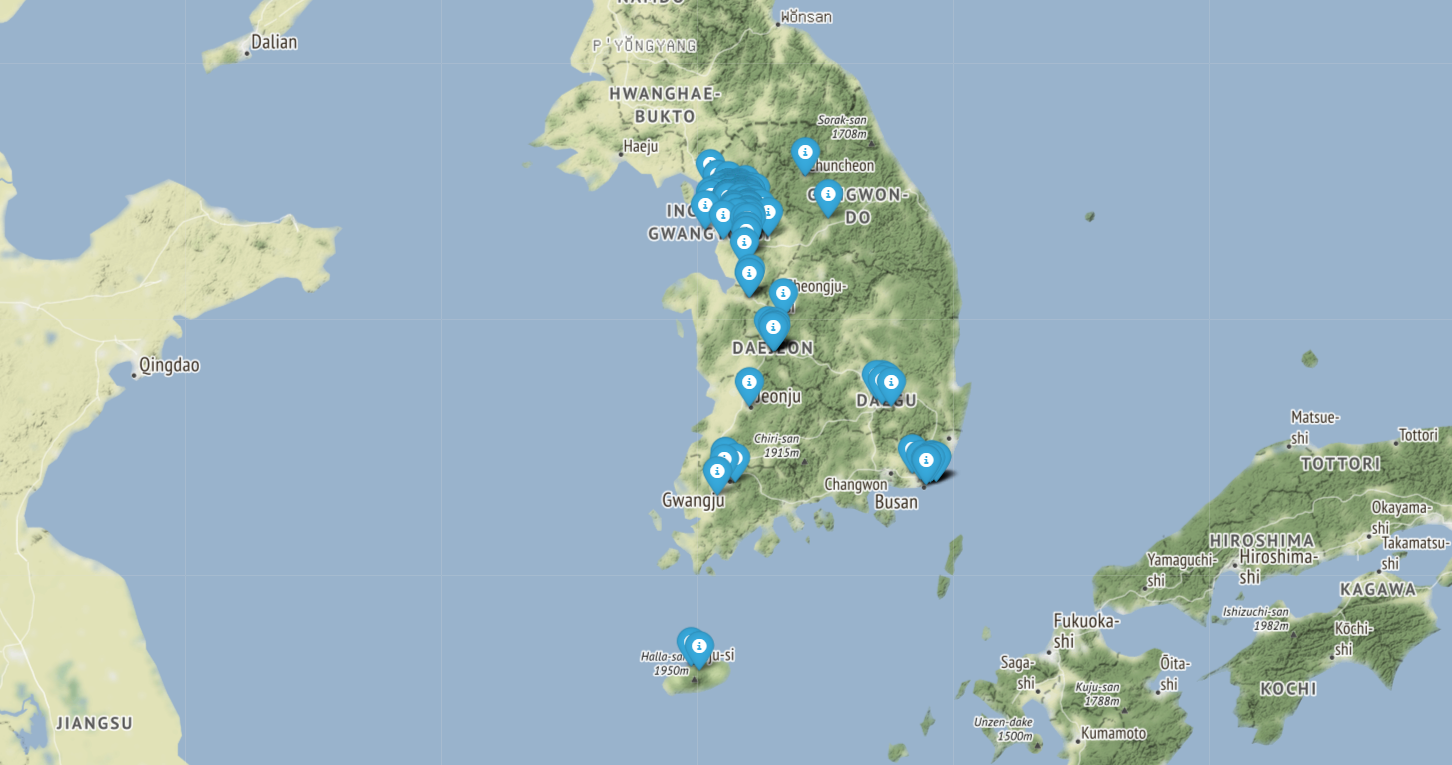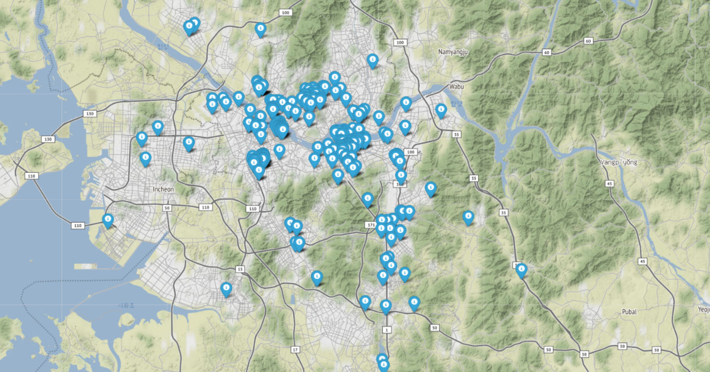 사실 소재지는 좀 다른 식으로 해보려고 했었는데 어떻게 하는지 정말 감이 안 잡혀서 그냥 이런 식으로 지도에 찍었다.