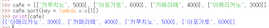 .sort(key = lambda x:x[1]) #x[1]의 값이 정렬의 기준 (key)