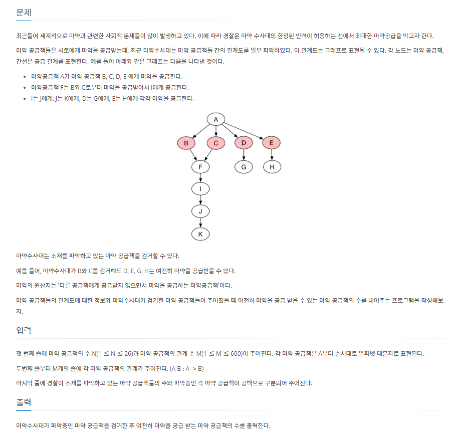 그리고 마약 원산지는 케이스마다 다른데, 원산지는 다른 곳에서 공급받지 않으므로 인접리스트 내부에 존재하지 않는다. 이를 통해 원산지를 확인한 후 dfs 함수를 돌리기 위해 all을 사용하여 if문으로 조건을 주었다.
