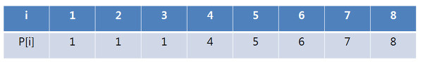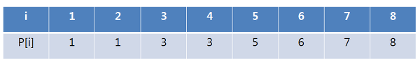 i = 4 인 경우 P[i] = 3