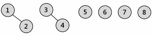 Union(1,2) Union(3,4)를 하여 노드를 연결하면,