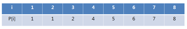 i = 2 인 경우 P[i] = 1