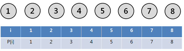 지금 현재는 모든 값이 자기 자신을 가리키므로 P[i] = i 이다.