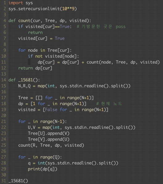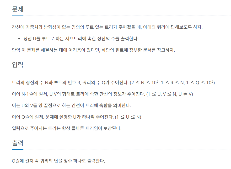<백준 15681 - 트리와 쿼리> https://www.acmicpc.net/problem/15681