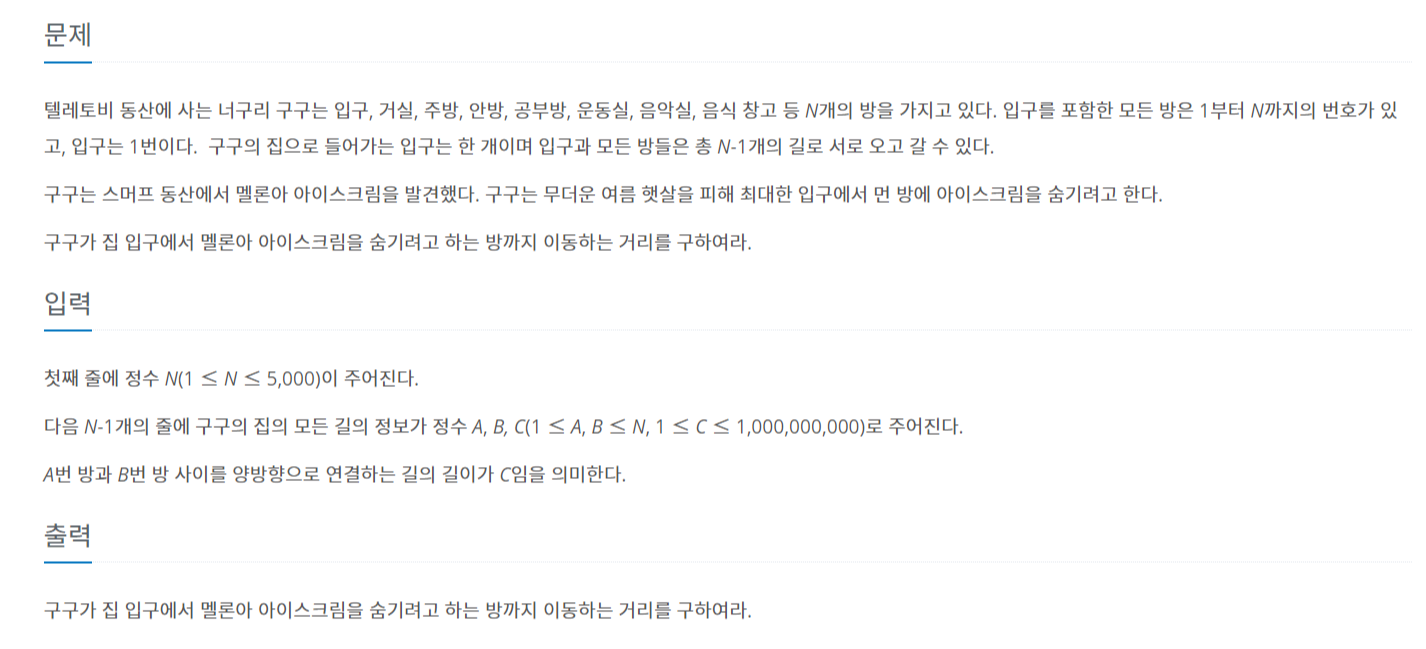 텔레토비 동산에 사는 너구리 구구는 입구, 거실, 주방, 안방, 공부방, 운동실, 음악실, 음식 창고 등 N개의 방을 가지고 있다. 입구를 포함한 모든 방은 1부터 N까지의 번호가 있고, 입구는 1번이