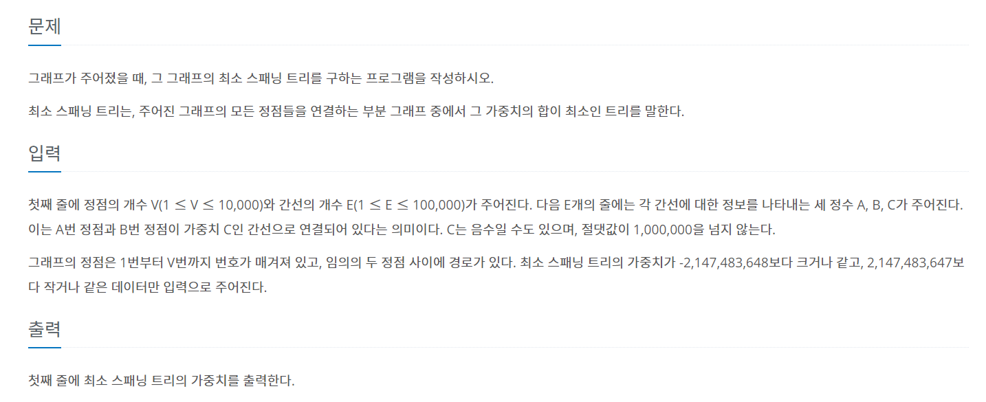 [Python] 백준 1197번 - 최소 스패닝 트리 본문