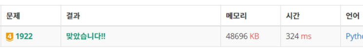문제 https://www.acmicpc.net/problem/1922