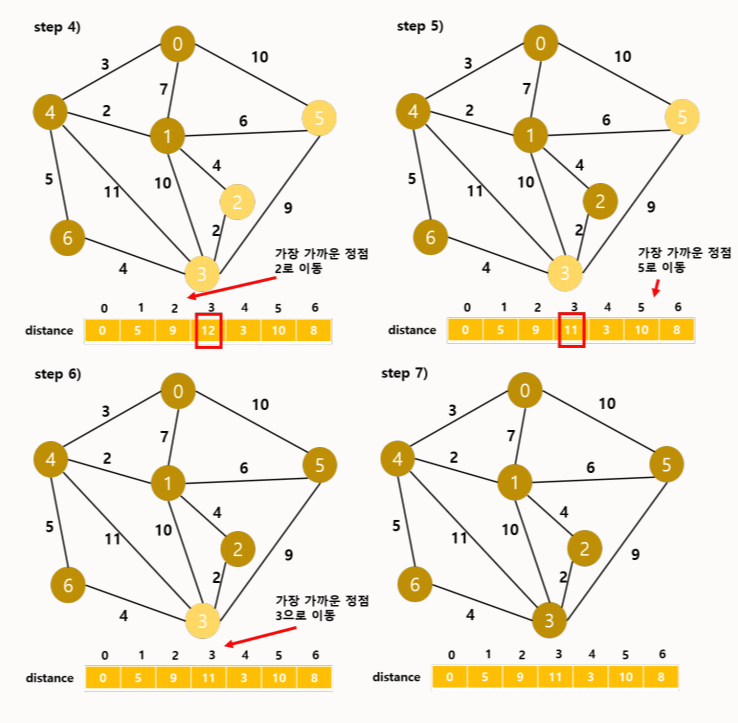 - Dijkstra 수행 과정
