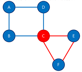 정점 C를 시작점으로 해서 돌아오는 경로 {C, E, F, C}를 찾아